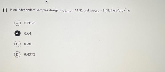 Solved 11 In an independent samples design ssBetween =11.52 | Chegg.com