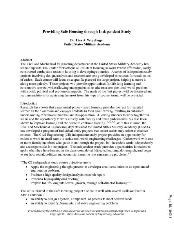 (PDF) Providing Safe Housing Through Independent Study