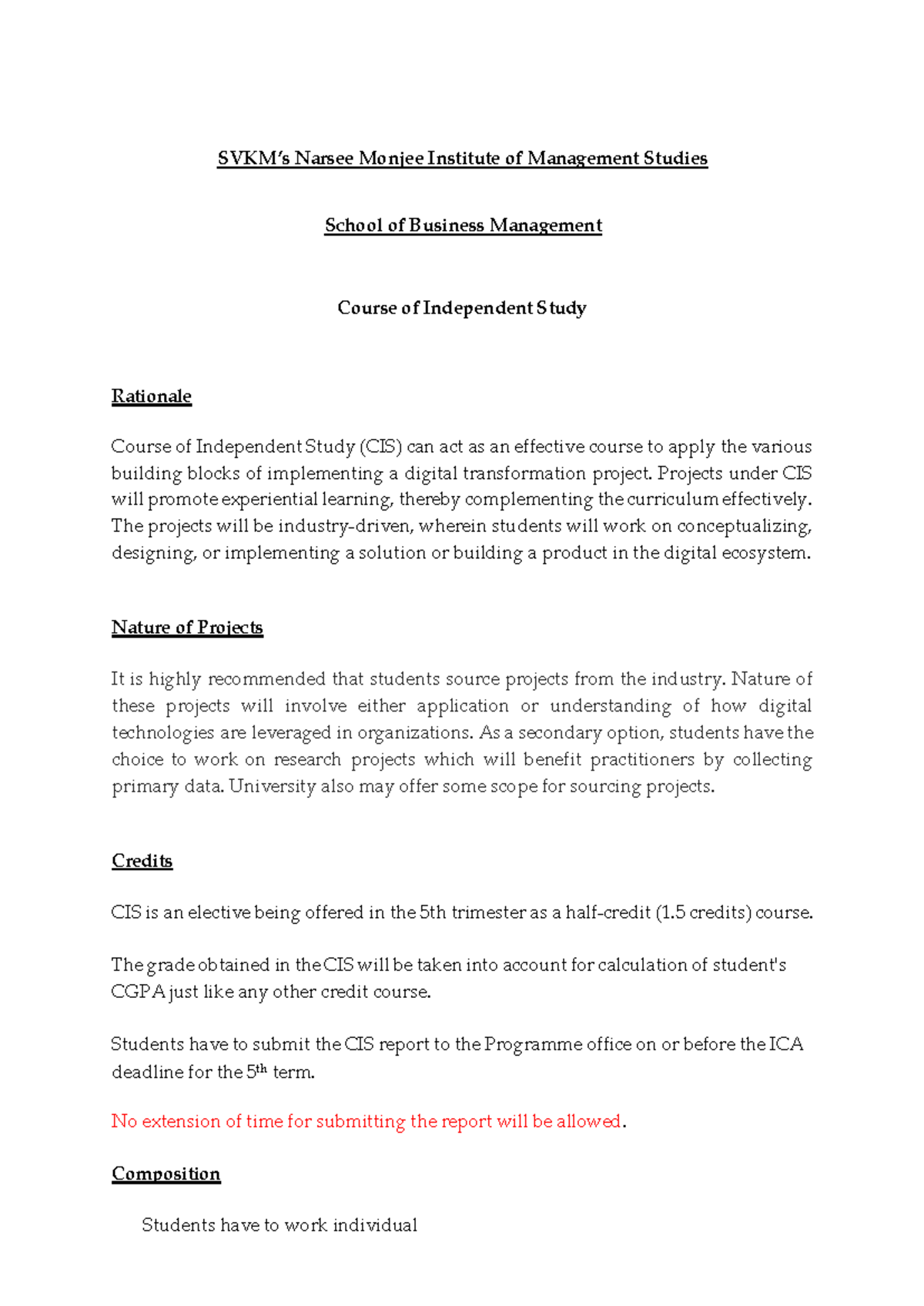 CIS 5th Trimester Independent Study Project Guidelines - Studocu