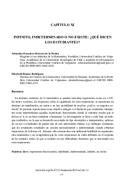 (PDF) Infinito, indeterminado o no existe: ¿qué dicen los estudiantes?
