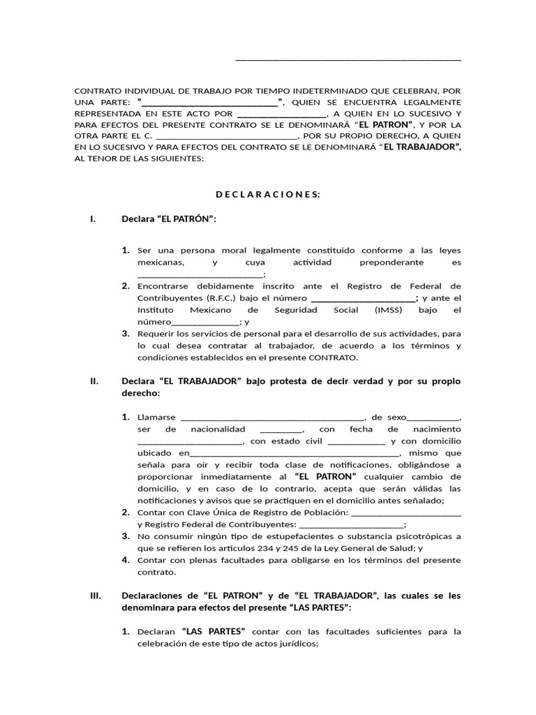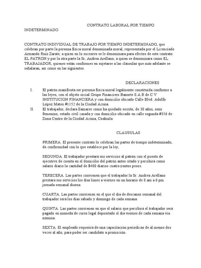 Contrato Individual por Tiempo Indeterminado | PDF | Derecho laboral ...