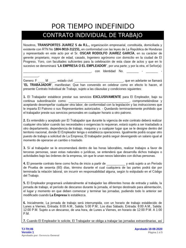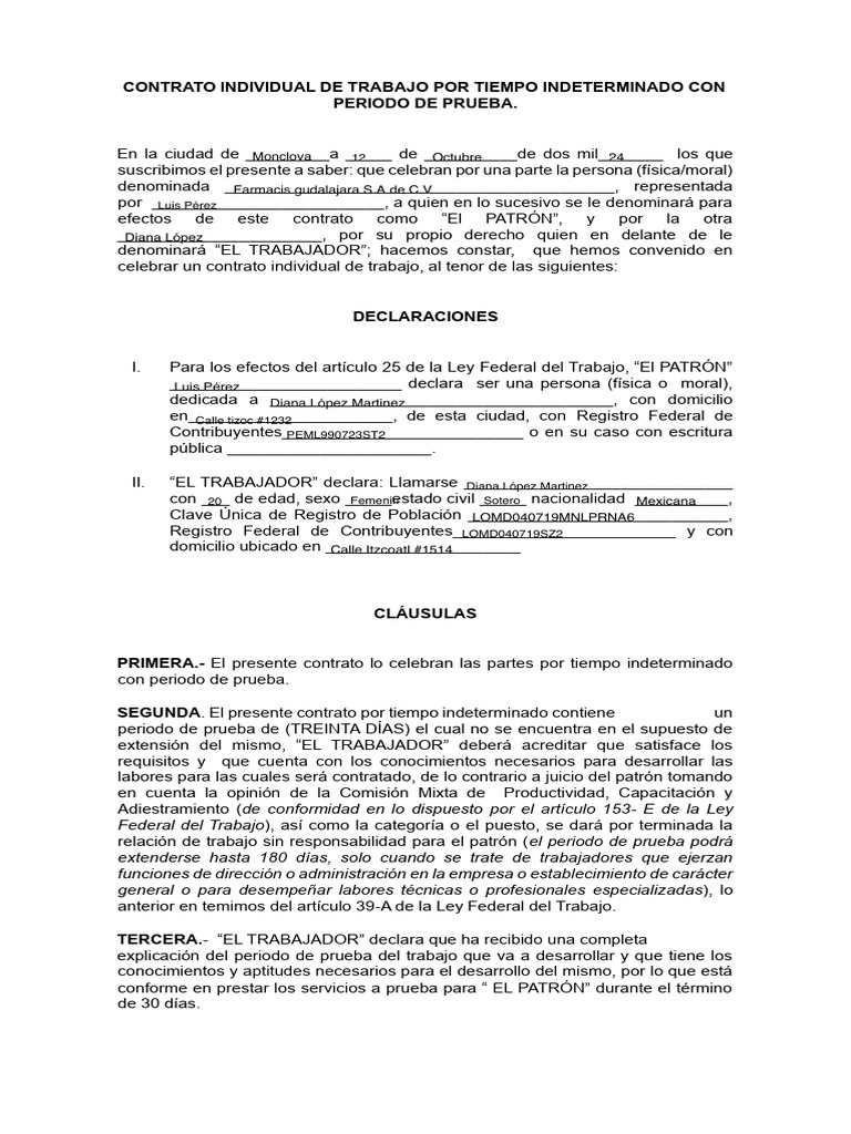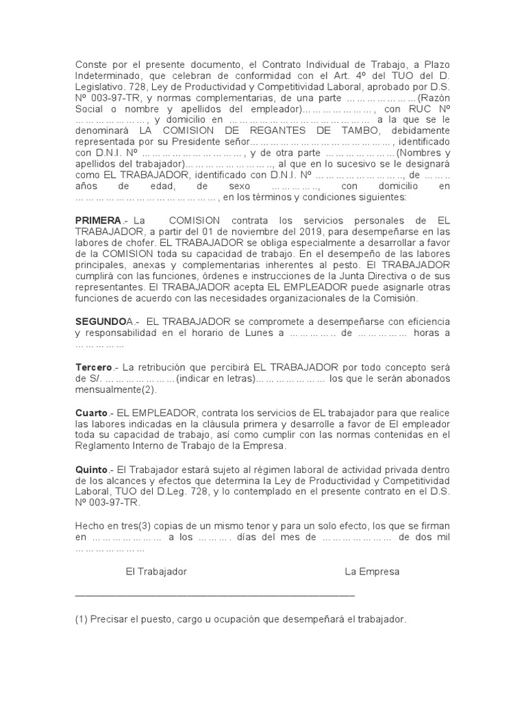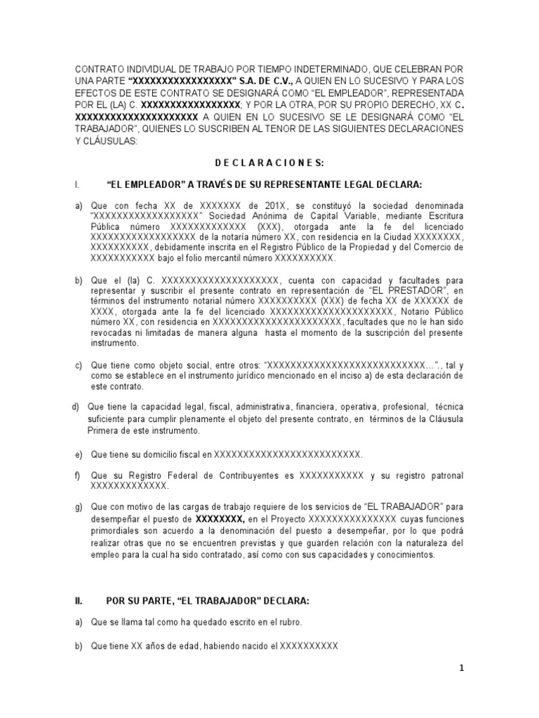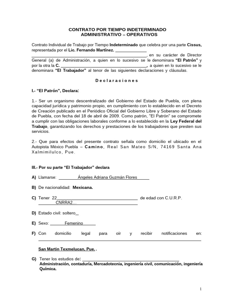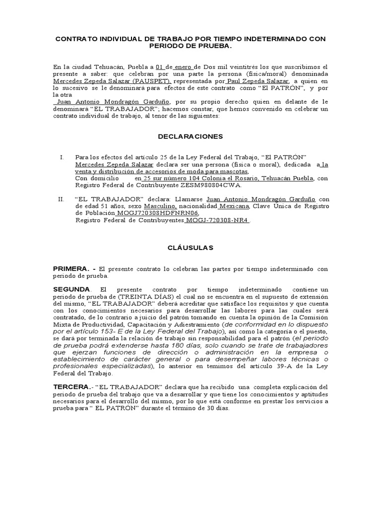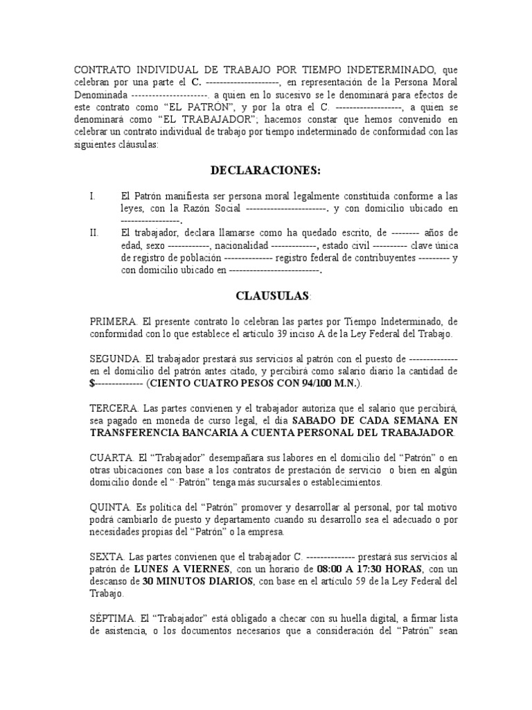 Contrato Individual de Trabajo Por Tiempo Indeterminado | PDF | Tiempo ...