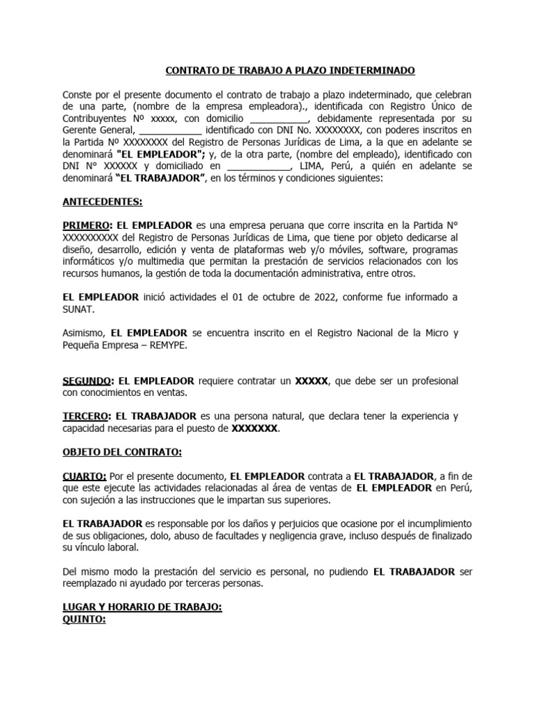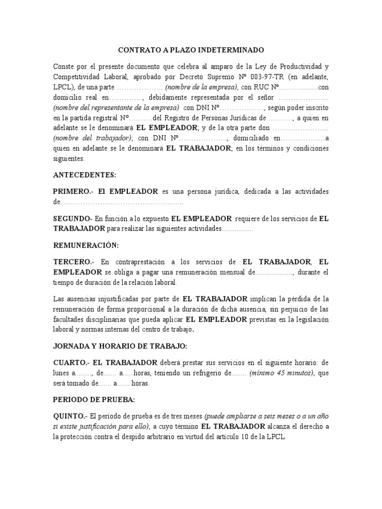 Contrato Laboral a Plazo Indeterminado | PDF | Derecho laboral | Daños ...