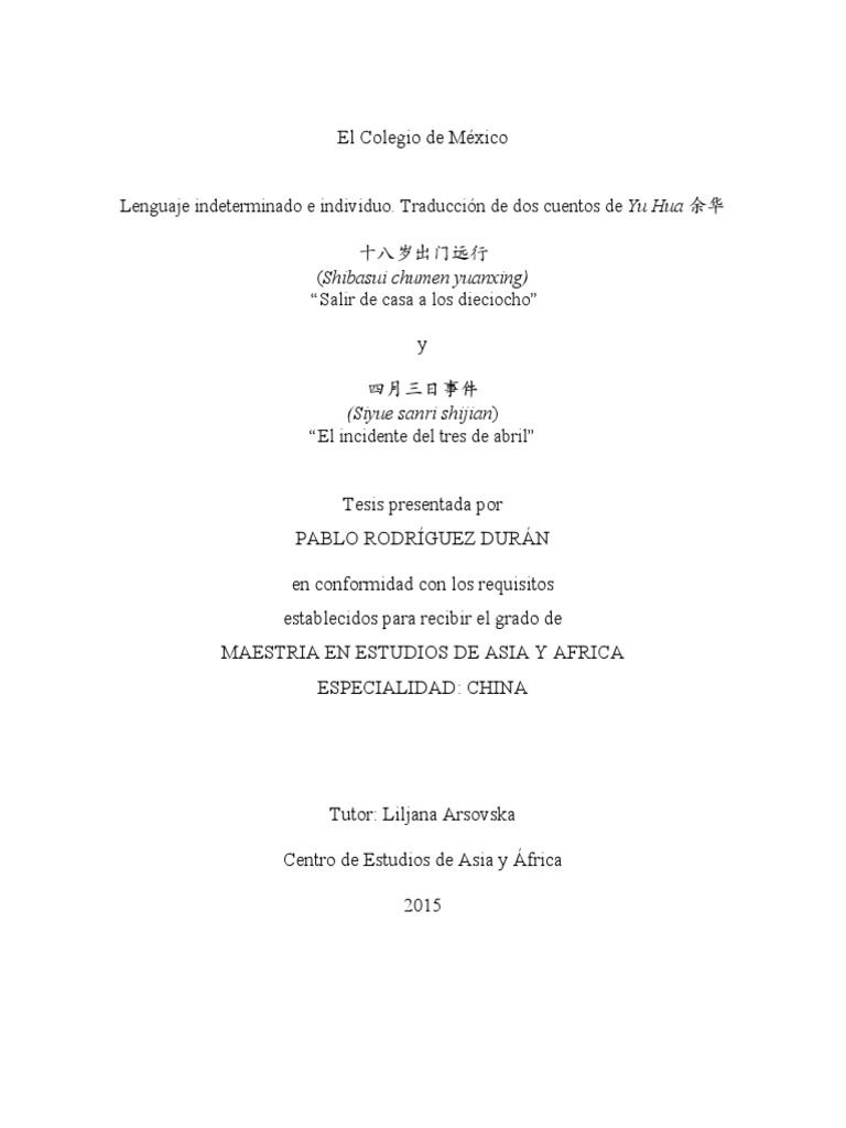 Lenguaje indeterminado e individuo. Traducción de dos cuentos de Yu Hua ...