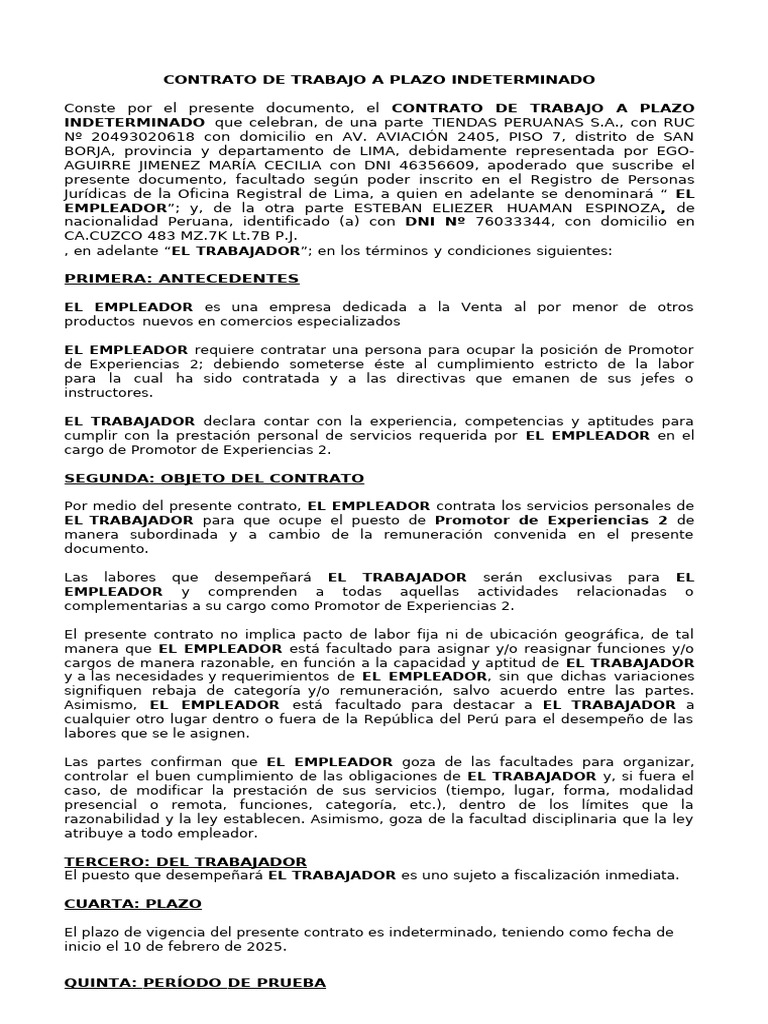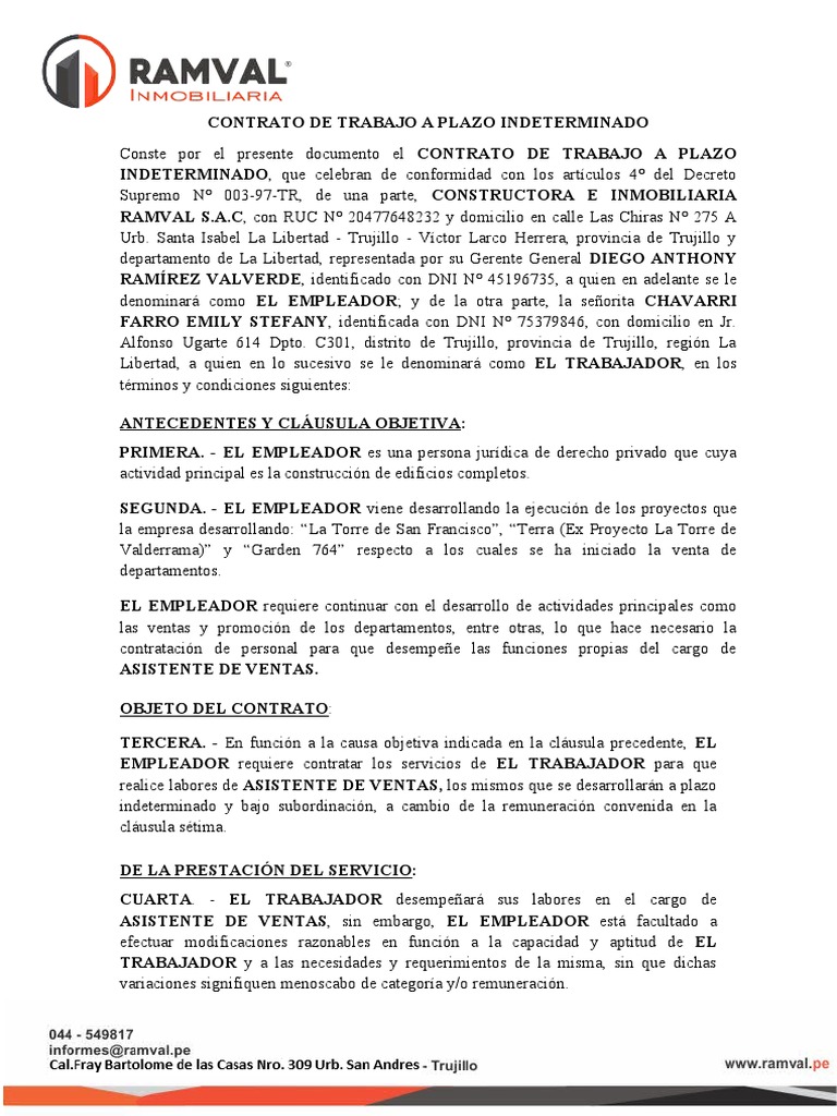 Contrato Indeterminado - Emily Chavarry | PDF | Derecho