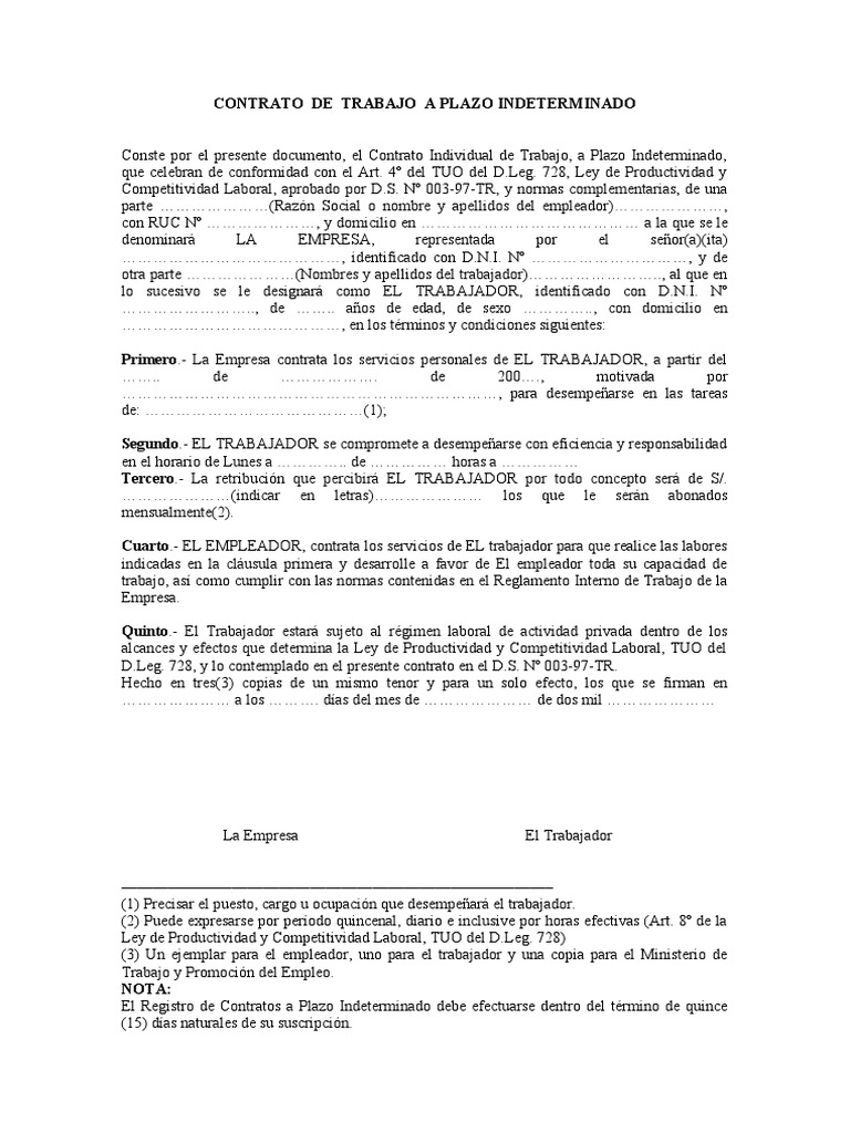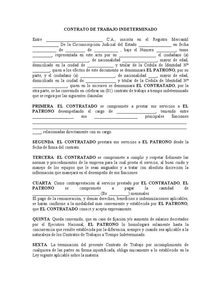 Contrato de Trabajo A Plazo Indeterminado | PDF | Derecho laboral ...