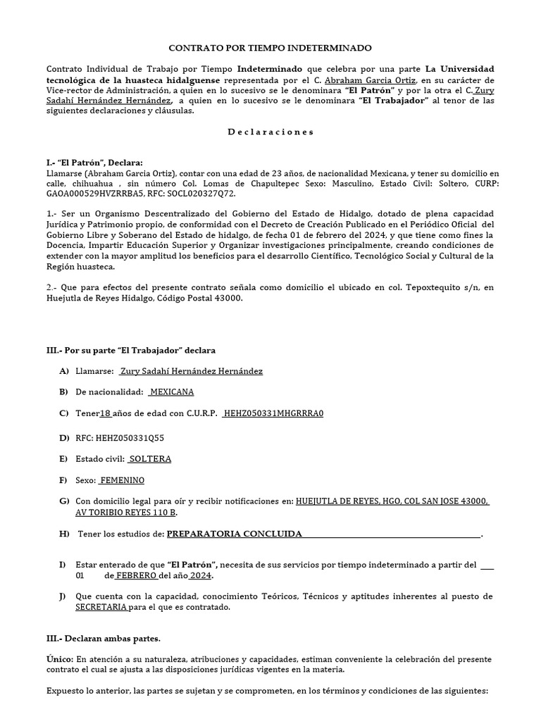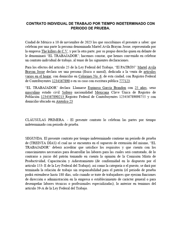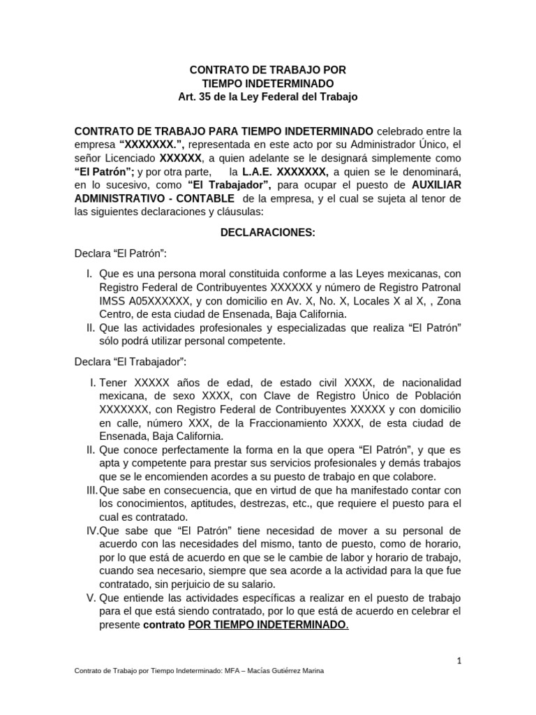 Contrato Por Tiempo Indeterminado | PDF | Derecho