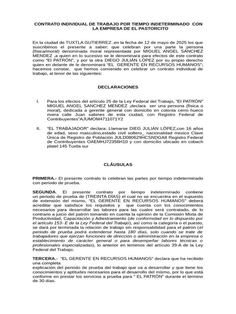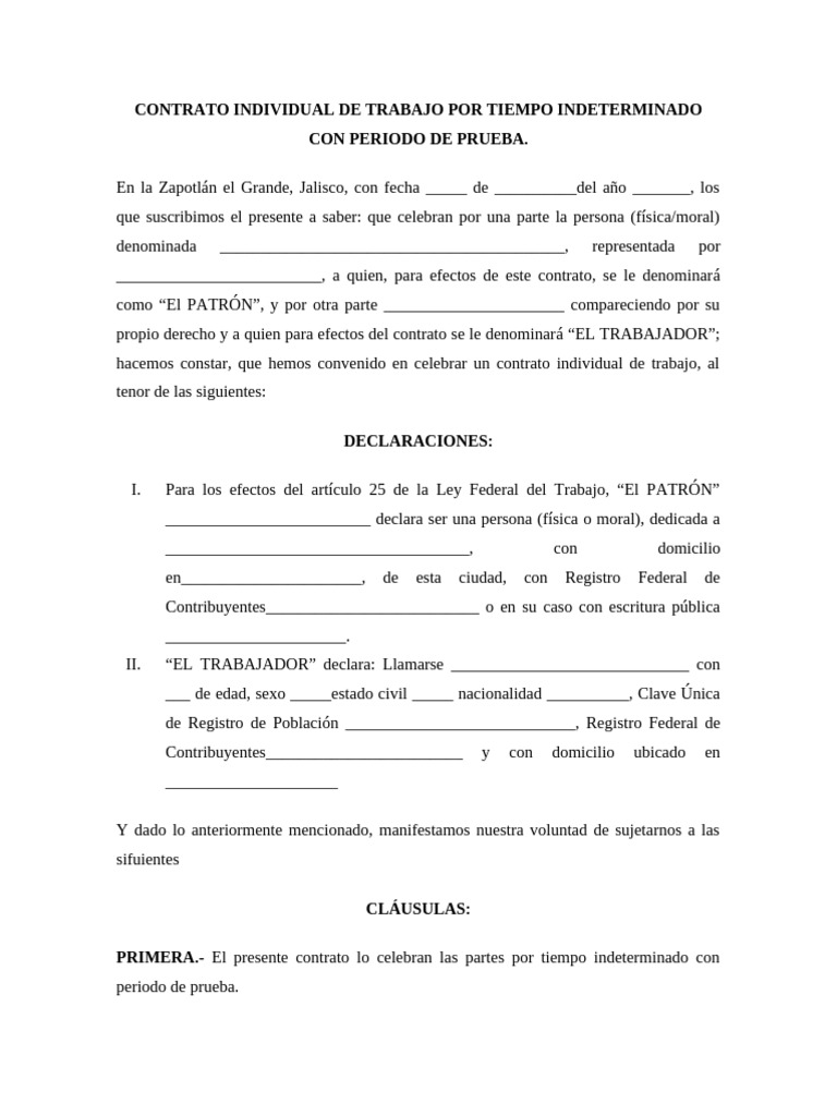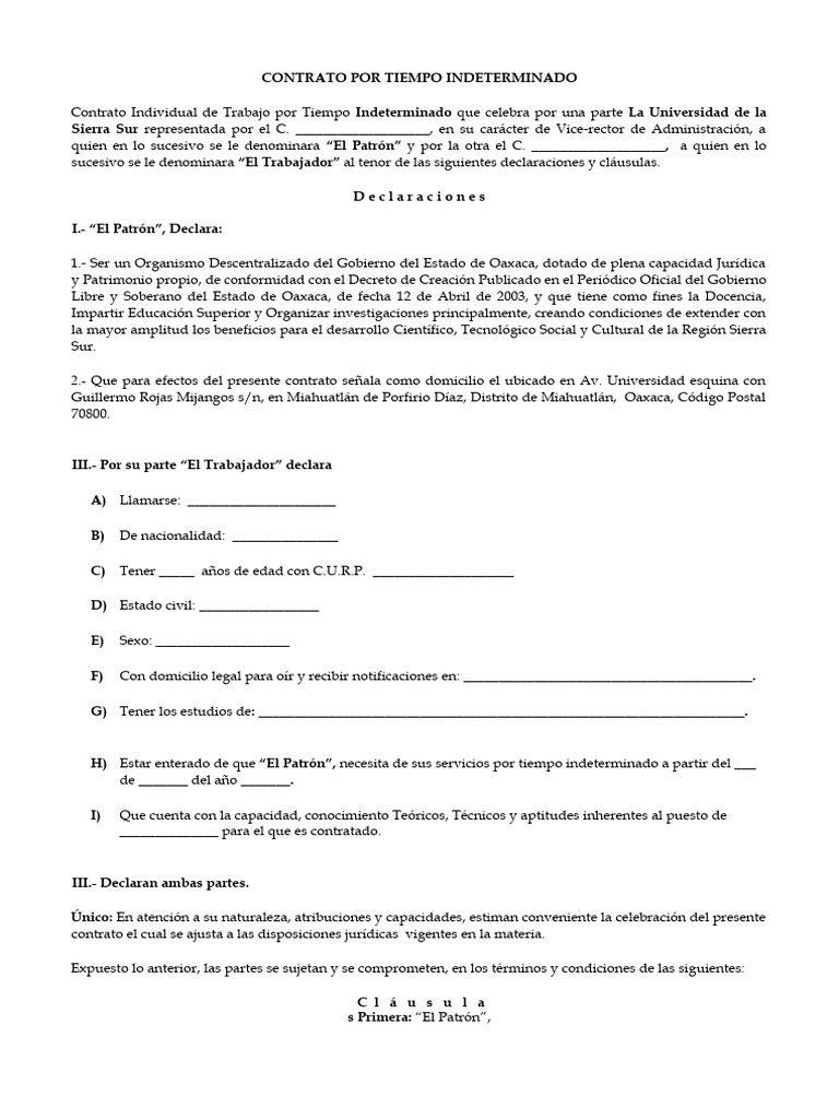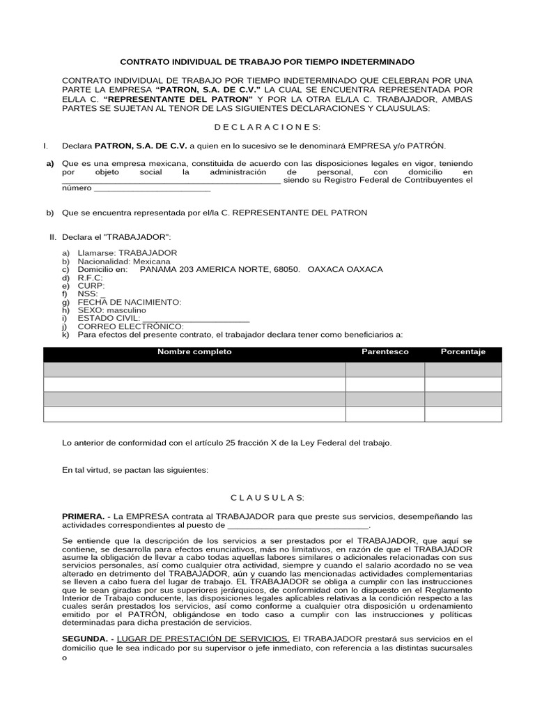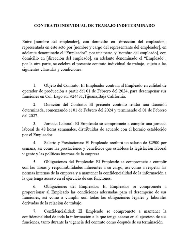 Contrato Trabajo Indeterminado Tijuana | PDF | Derecho laboral | Justicia