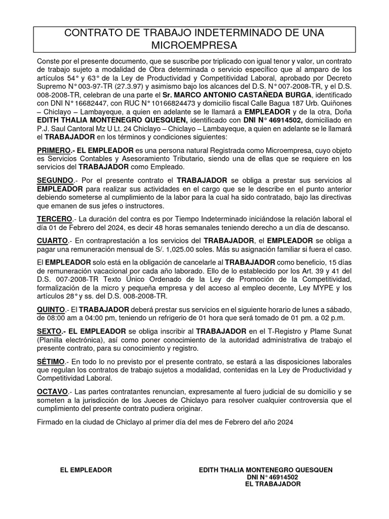 Contrato de Trabajo Indeterminado de Una Microempresa | PDF | Justicia ...