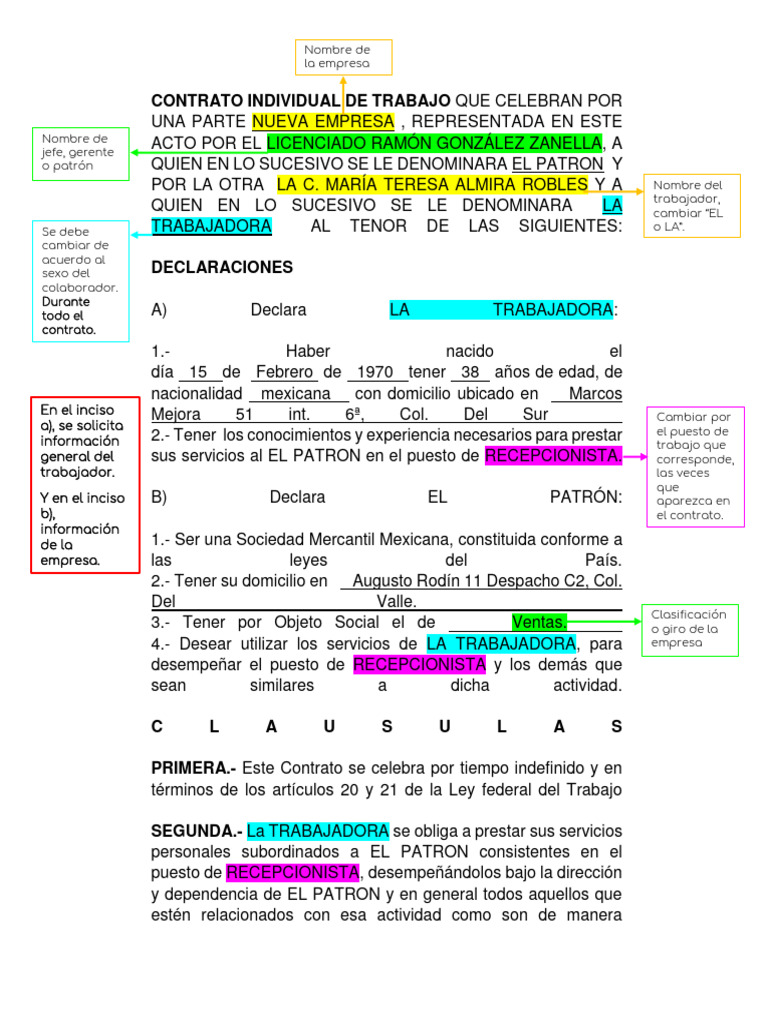 FORMATO DE CONTRATO INDIVIDUAL DE TRABAJO POR TIEMPO INDETERMINADO ...
