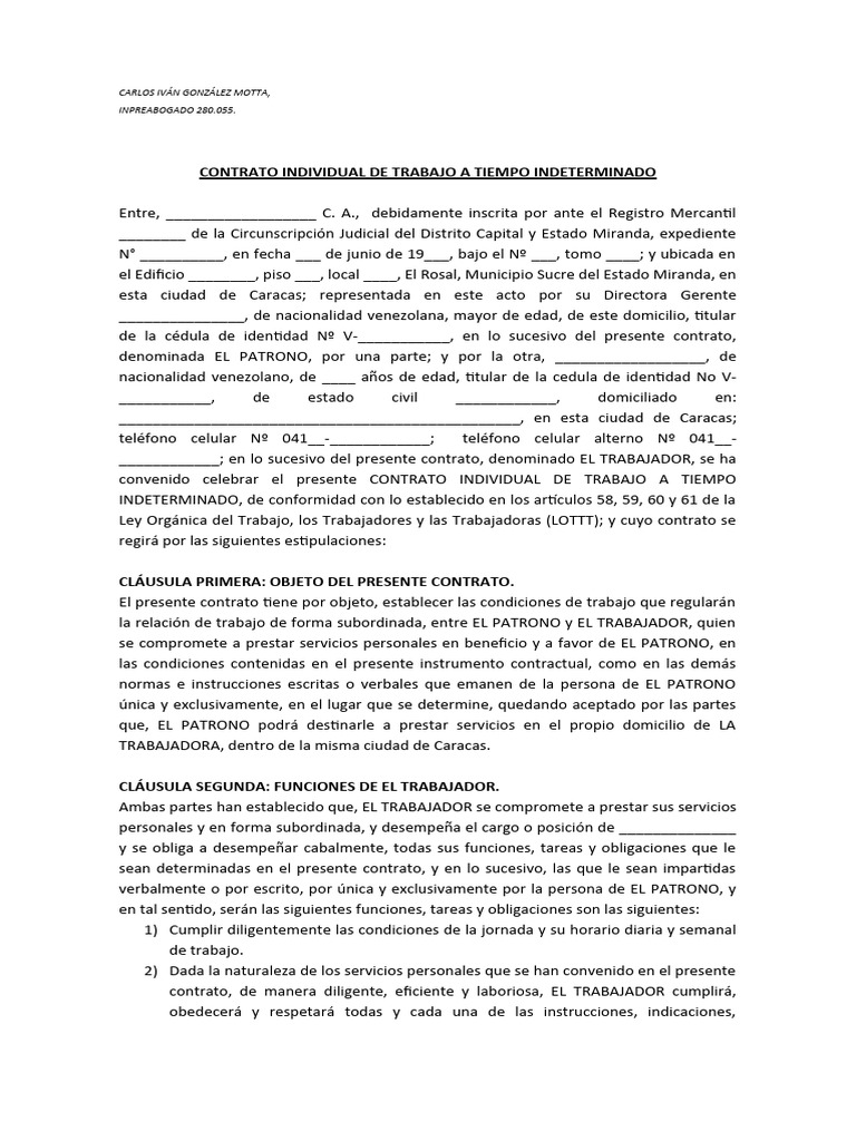 Modelo Contrato de Trabajo Indeterminado | PDF | Virtud | Instituciones ...