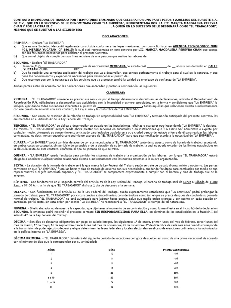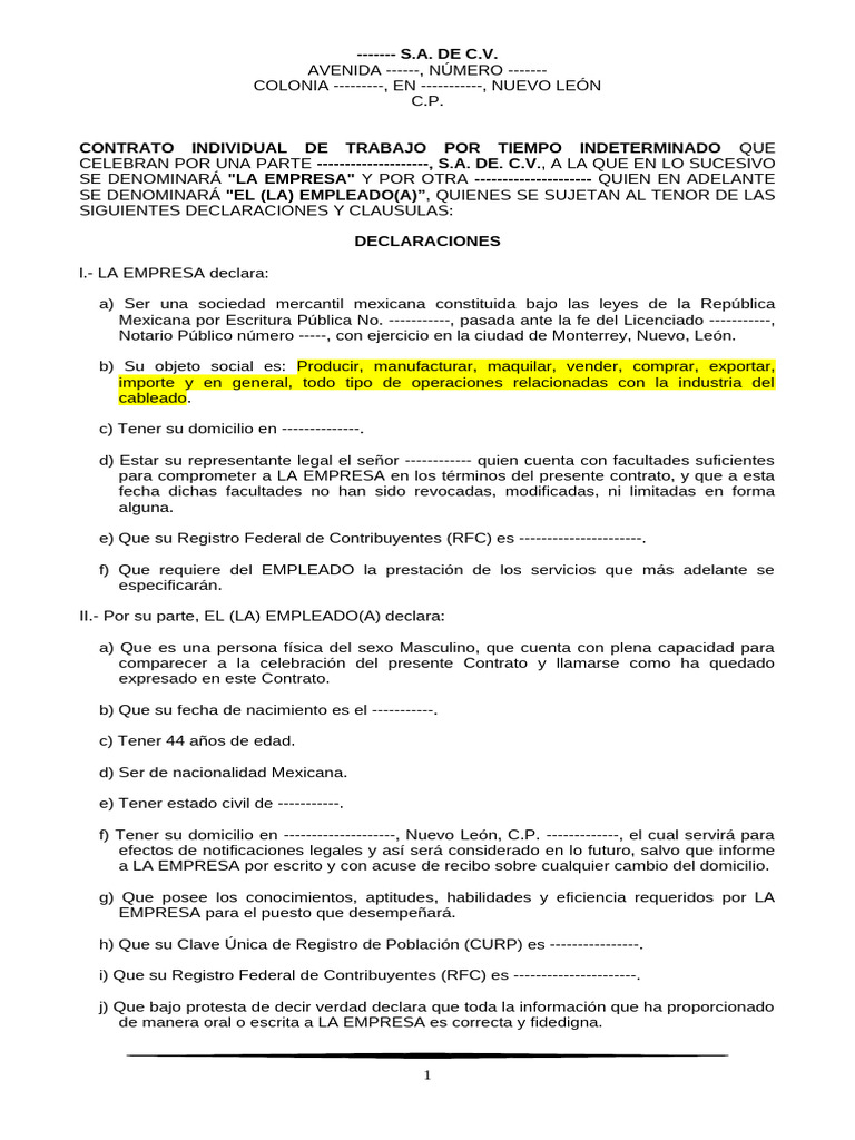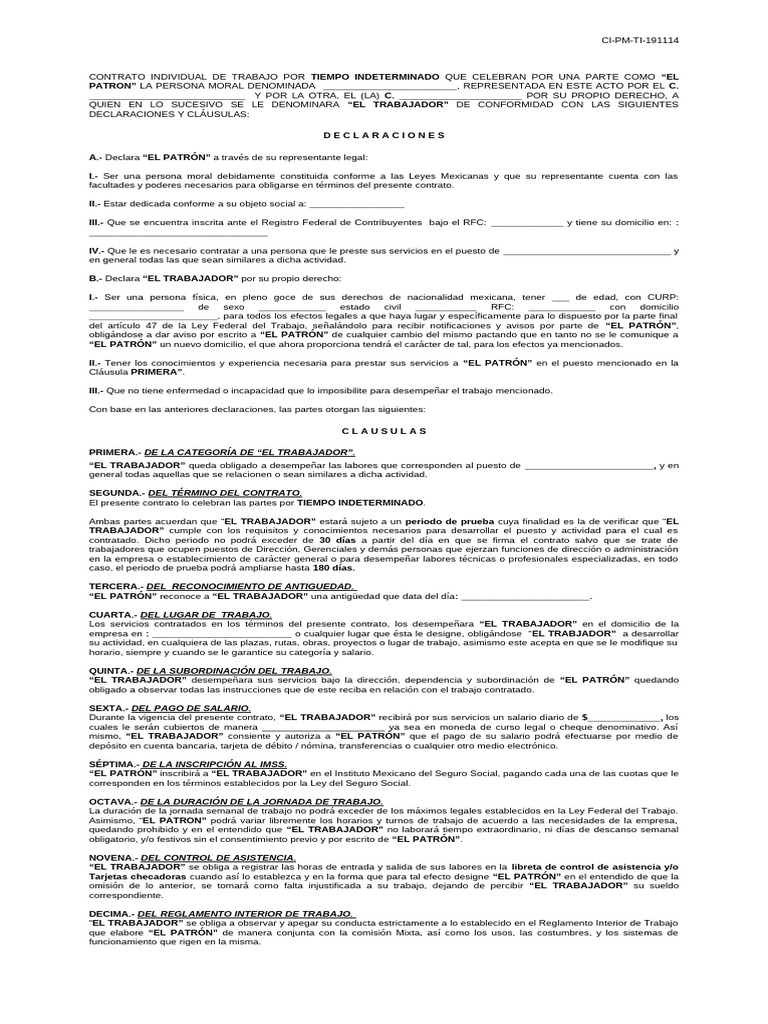 Contrato de Trabajo Indeterminado en NL | PDF | Derecho laboral | Business