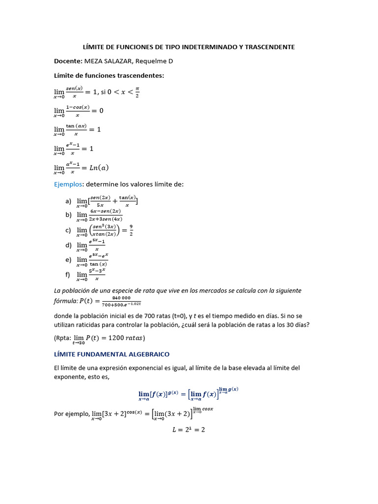 Límite de Funciones de Tipo Indeterminado y Trascendente | PDF