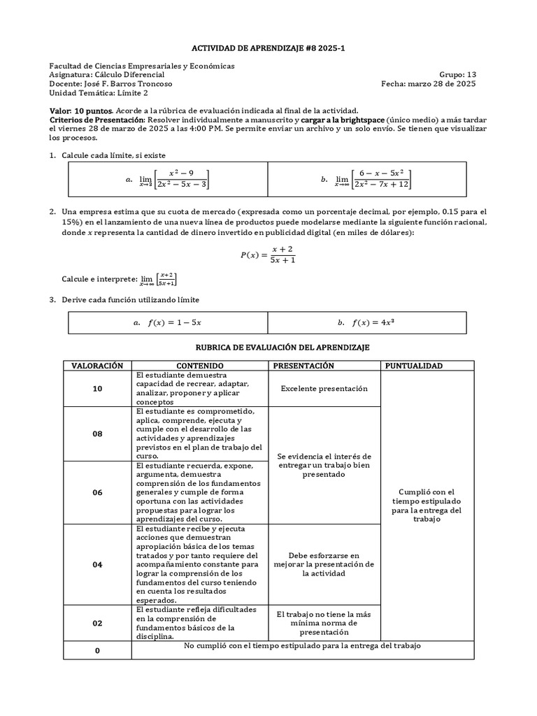 Actividad de Aprendizaje #8 Límite Indeterminado e Infinito | PDF ...