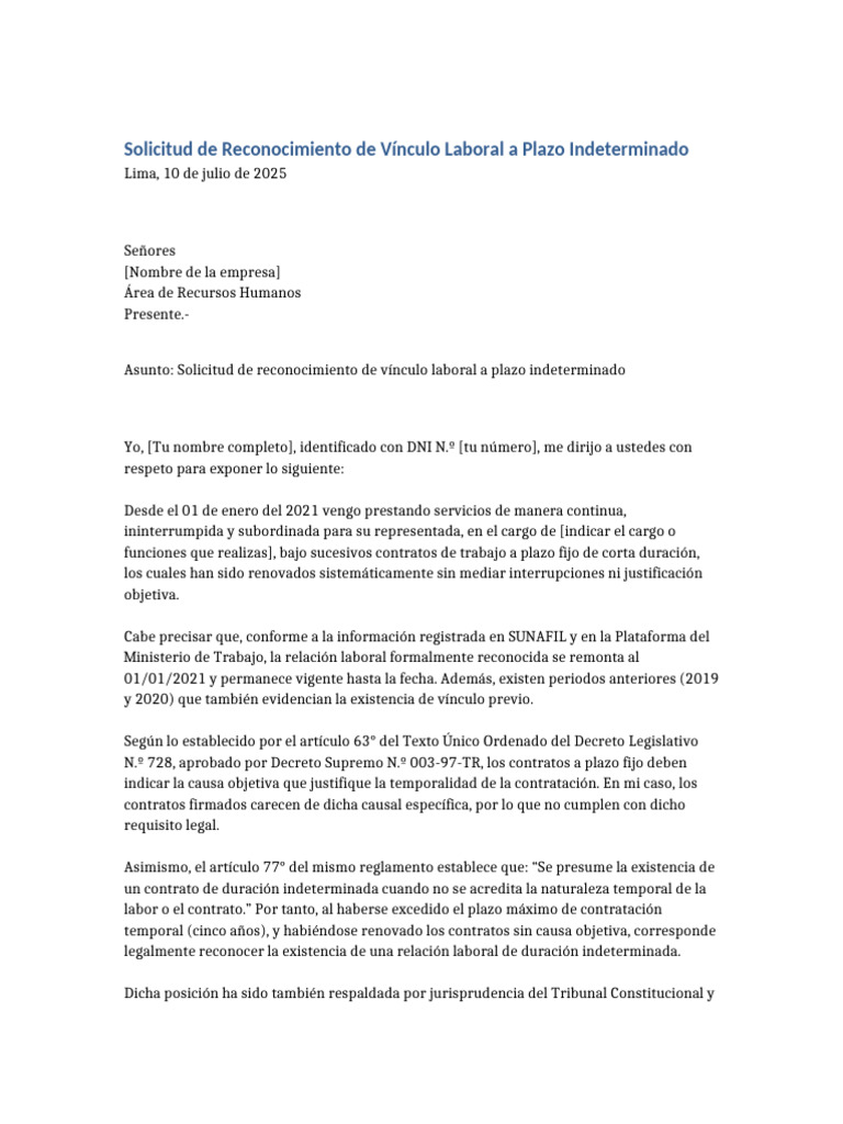 Solicitud Reconocimiento Vinculo Indeterminado | PDF | Derecho laboral ...