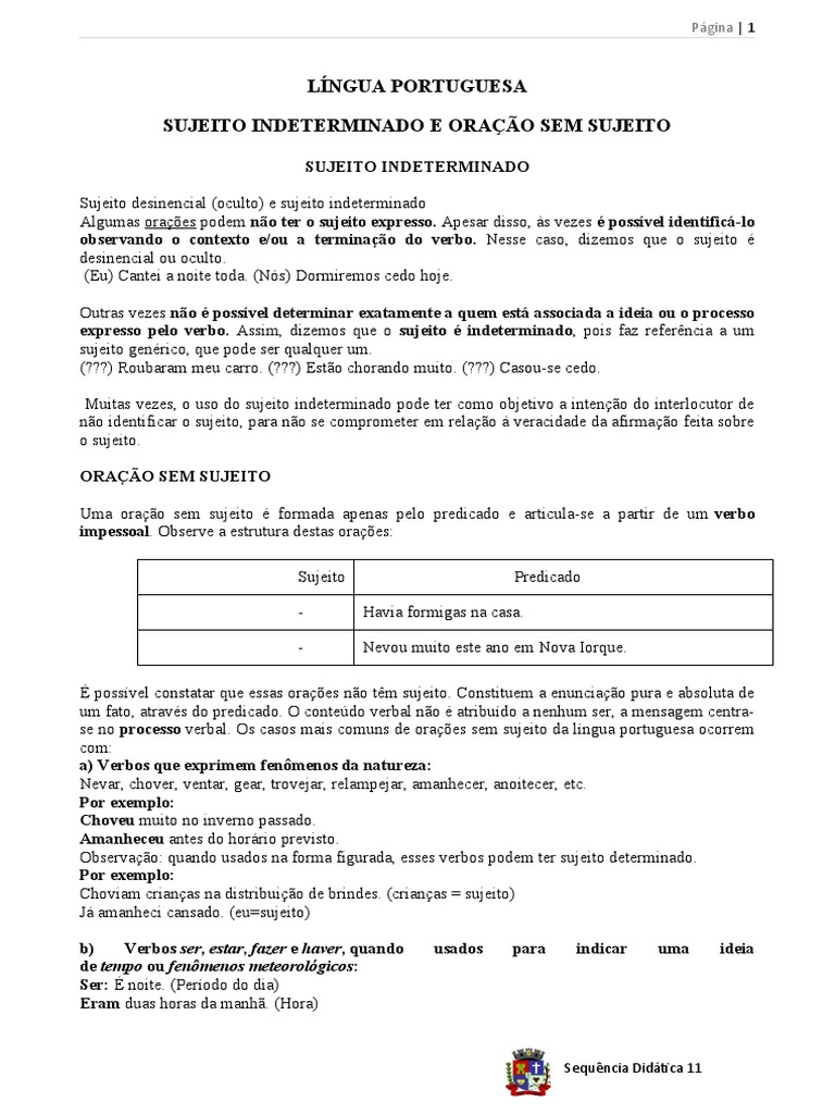 Sujeito Indeterminado e Oração Sem Sujeito | PDF | Assunto (gramática ...