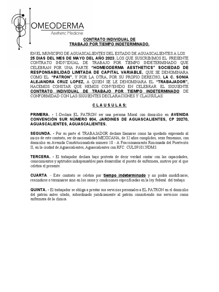 Contrato Por Tiempo Indeterminado Homeoderma y Sonia | PDF