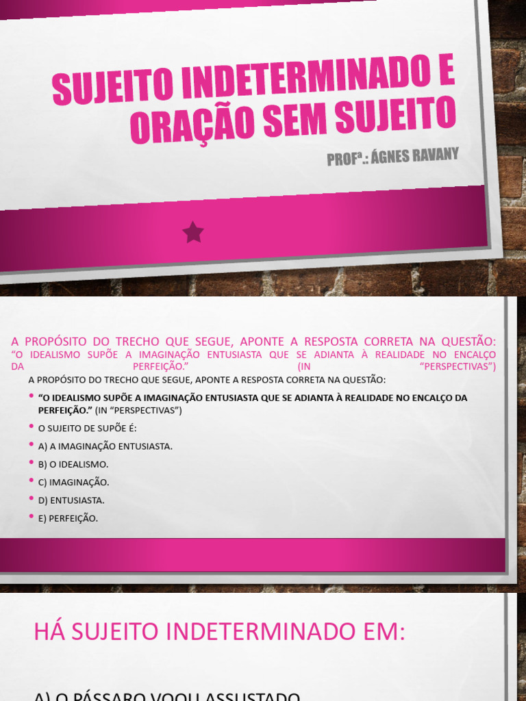 Diferença entre SUJEITO INDETERMINADO e SUJEITO INEXISTENTE - Não ...