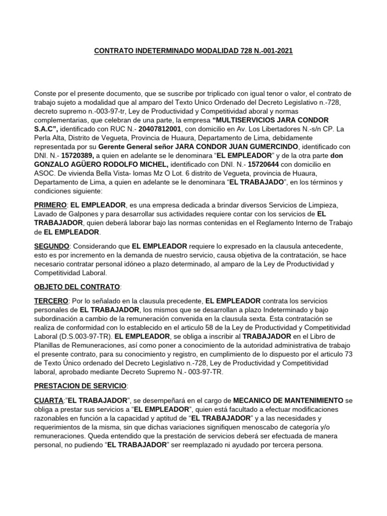 Contrato Indeterminado Modalidad 728 | PDF | Derecho laboral | Business