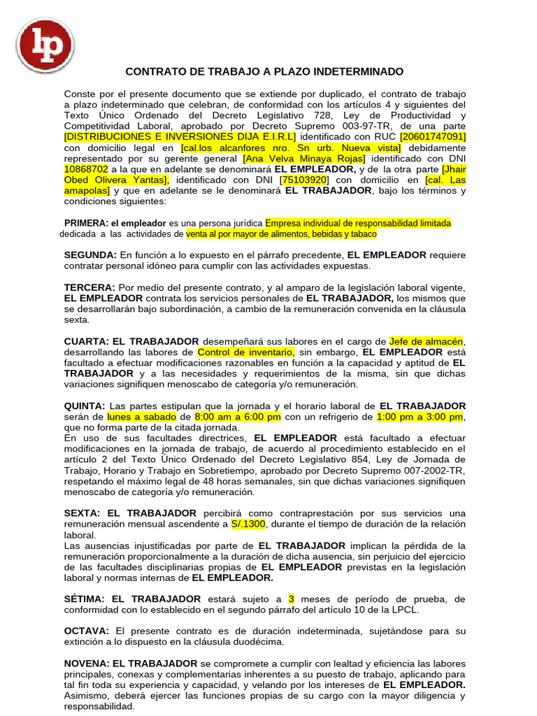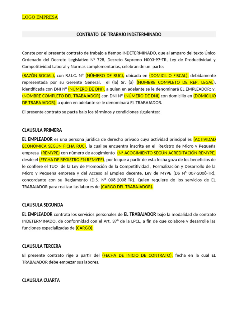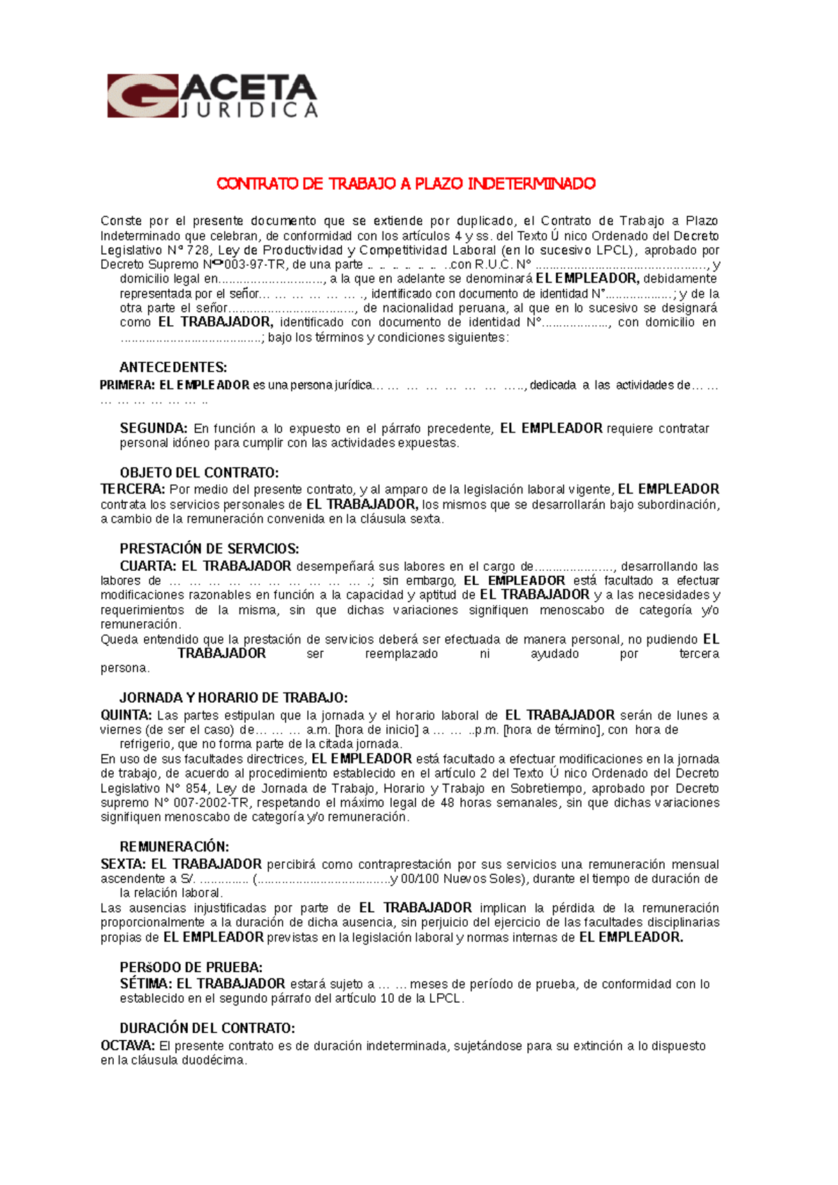 Contrato de Trabajo Indeterminado según la LPCL - Studocu