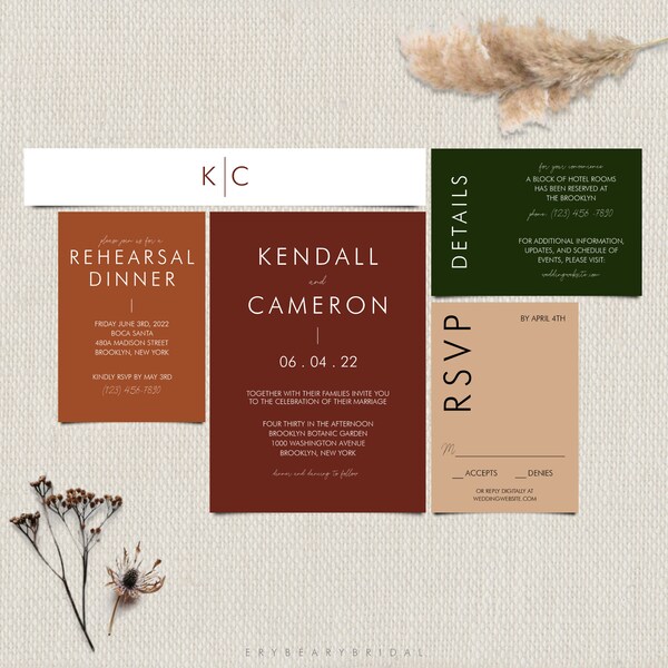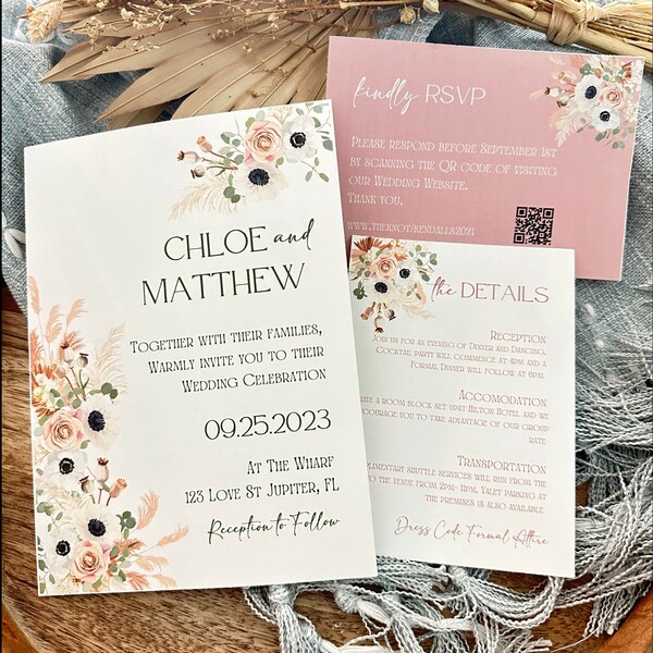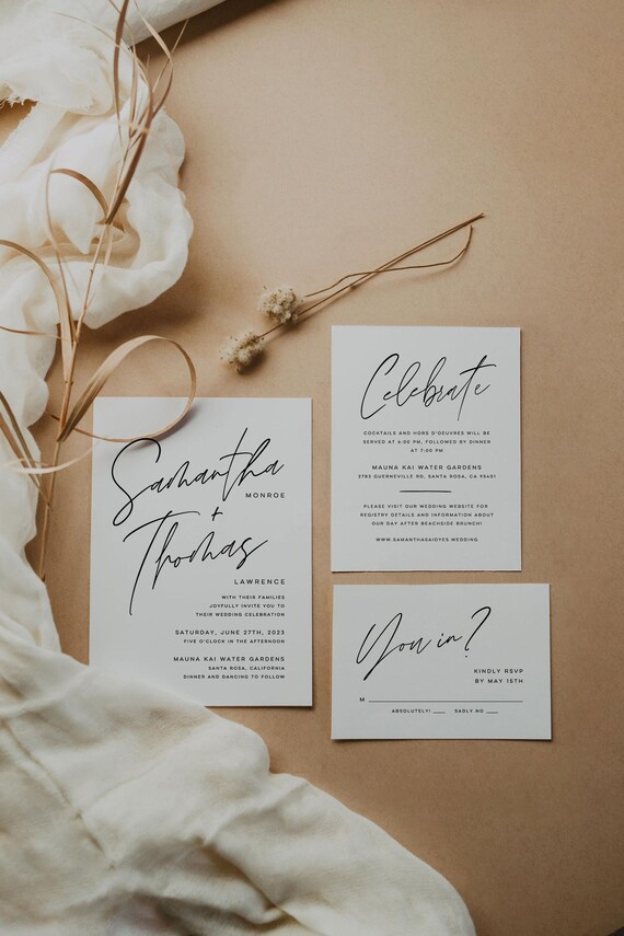 modern calligraphy boho wedding invitation | indie wedding invitation ...