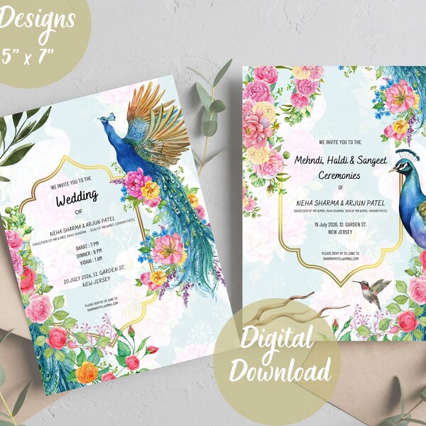Elegant Indian Wedding Invitation, Indian Wedding Invite, Wedding ...