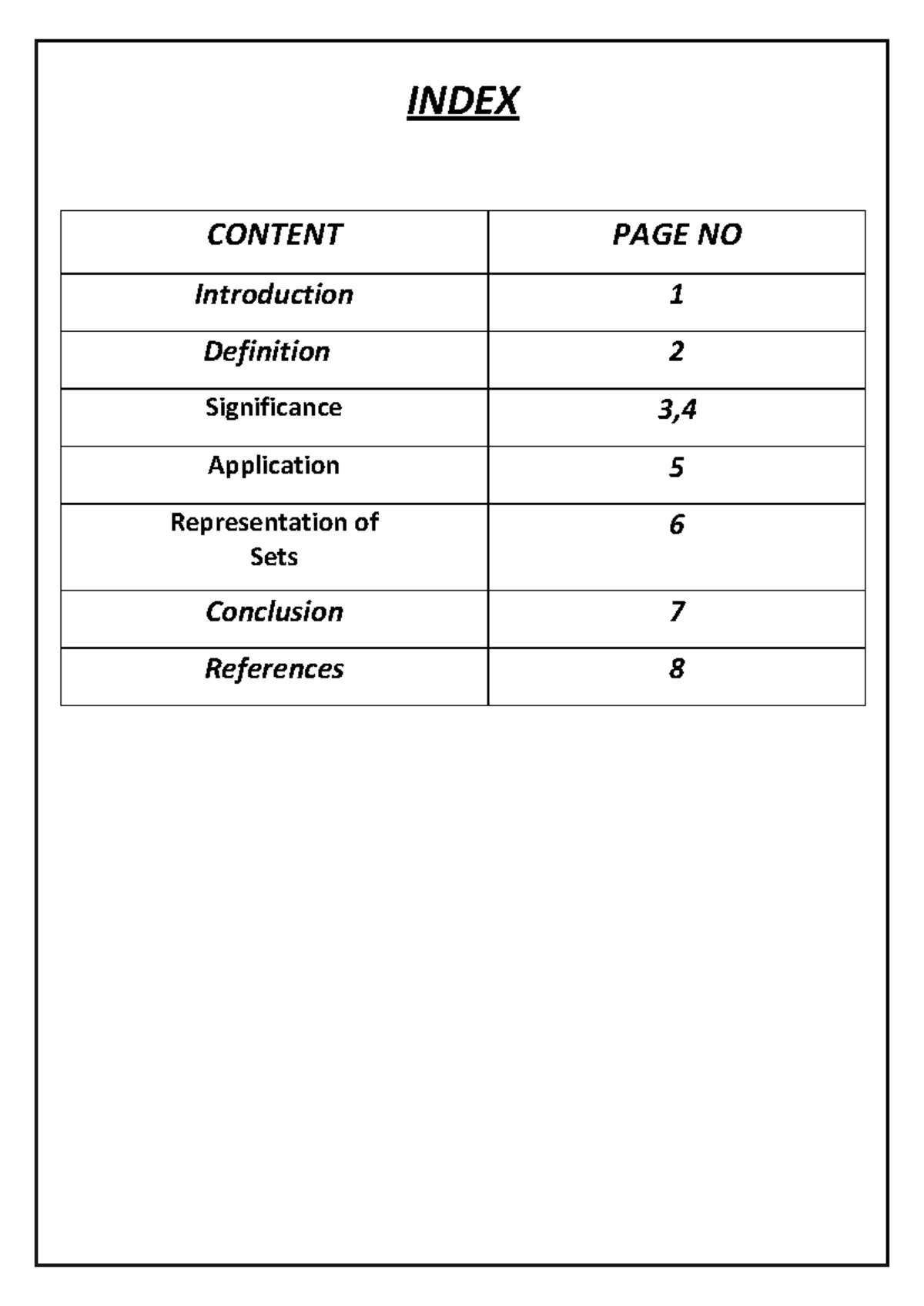 Index for Project Report File, School & College - Digiandme.com