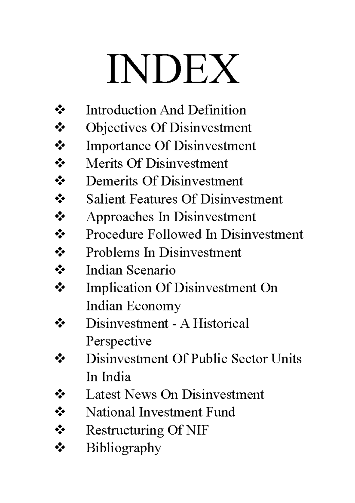 Disinvestment Policy Of Government Pavithran Project 12th - INDEX ...