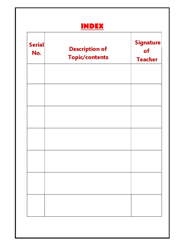 Index: Serial No. Description of Topic/contents Signature of Teacher | PDF