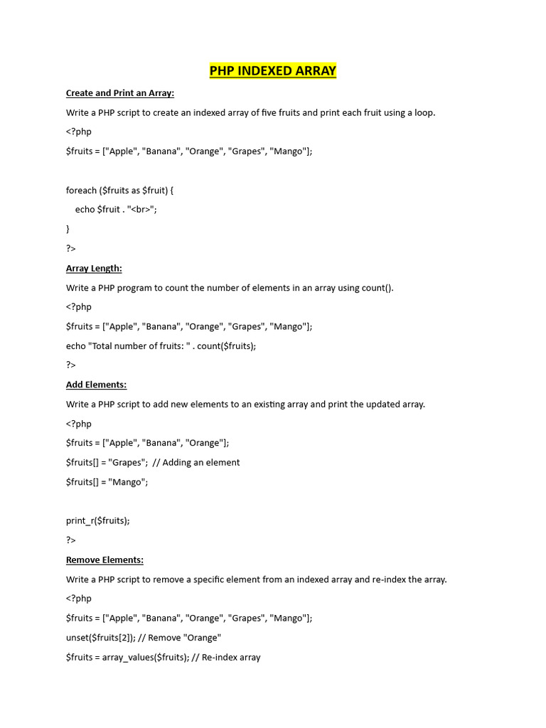 SOLUTION: PHP ARRAYS - (Indexed arrays, Associative arrays ...