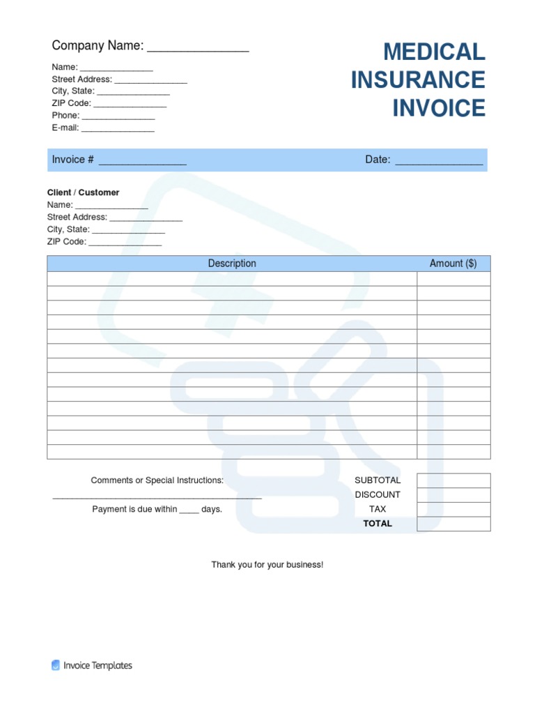 Medical Insurance Invoice Template | PDF