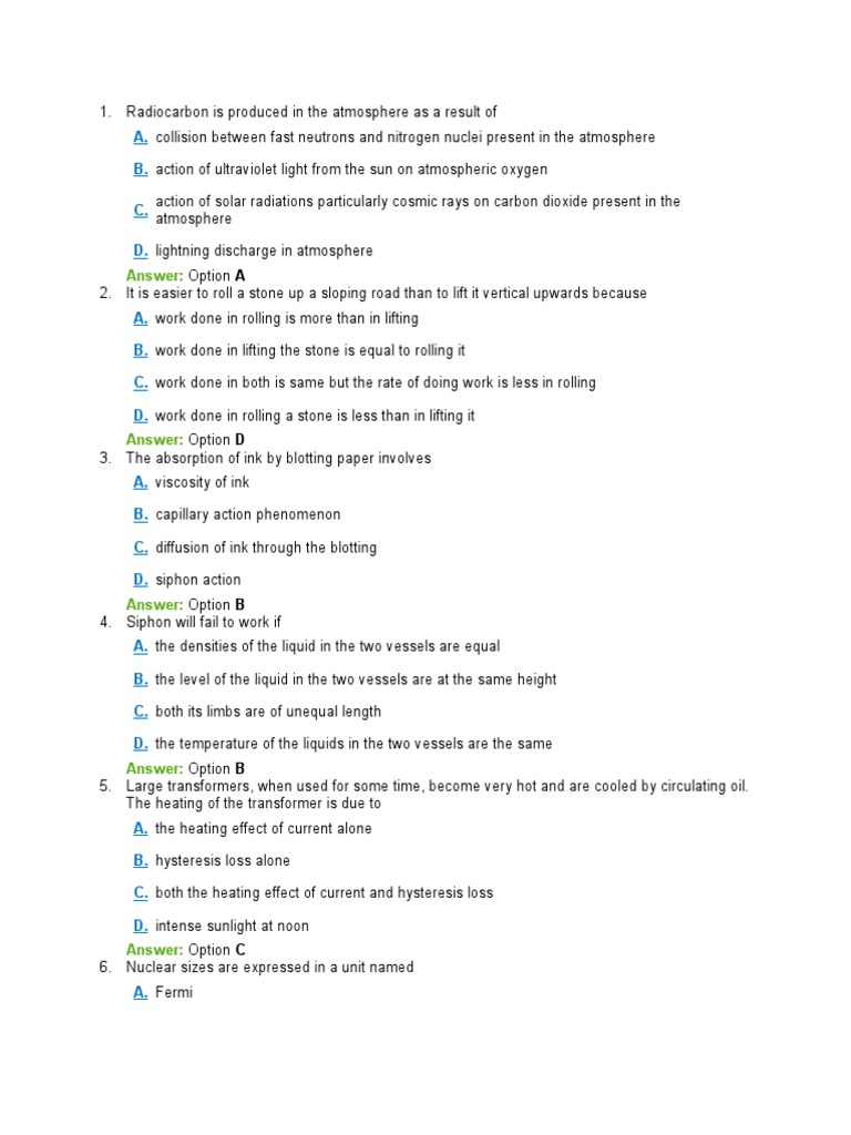 Physics MCQs Indiabix With Answers | PDF | Atmosphere Of Earth | Force