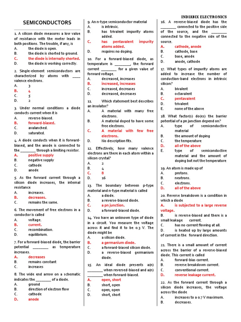 INDIABIX-Part 1-ELEX-MCQs PDF | PDF | Diode | P–N Junction