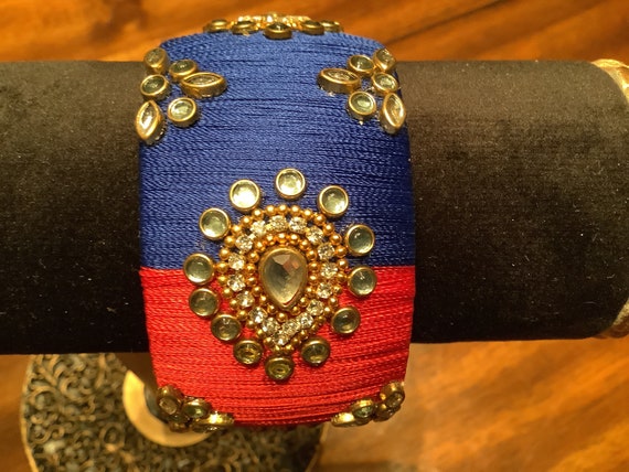 Handmade Blue/red Indian silk thread bangle w/ kundan tear | Etsy