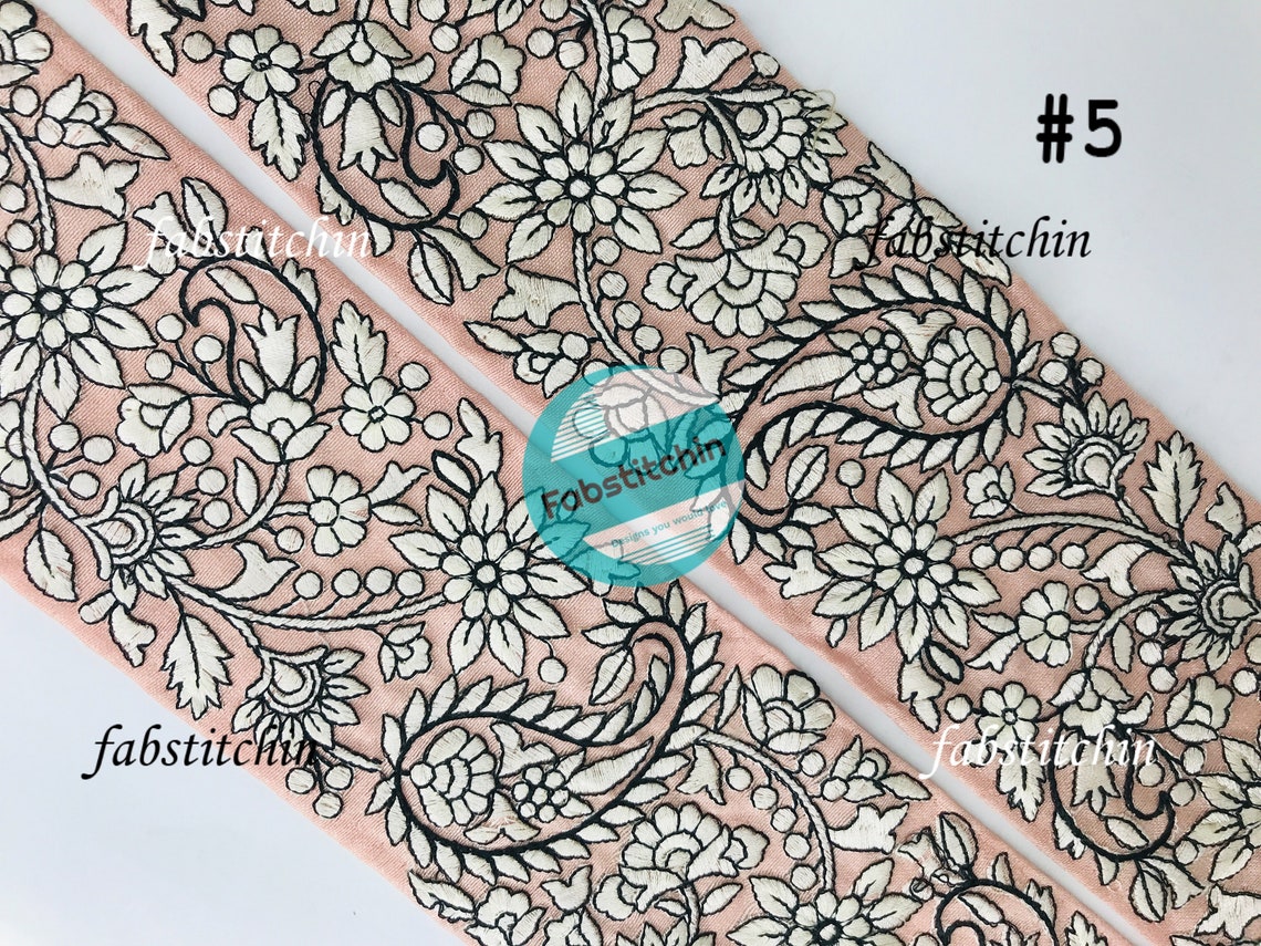 Indian Thread Embroidery Fabric Trim by the Yard Embroidered Belts ...