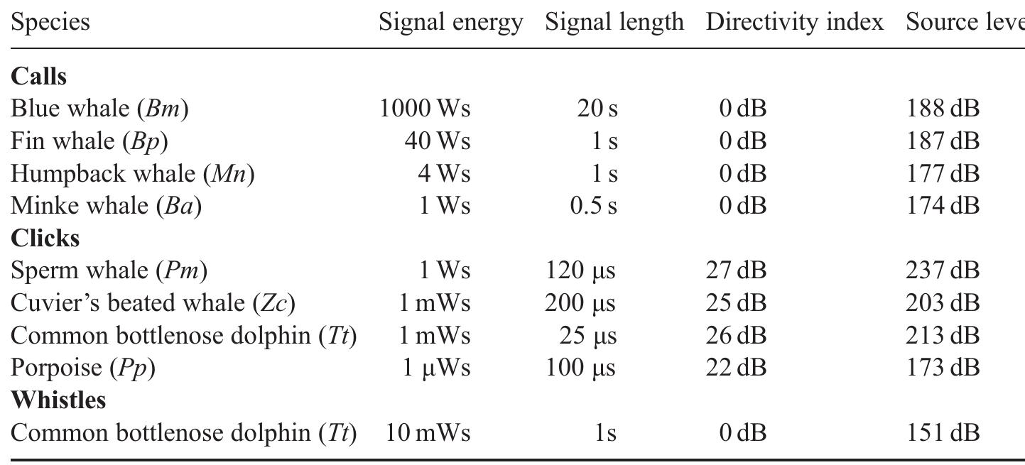 Table 5 - from Passive Acoustic Monitoring of Cetaceans by