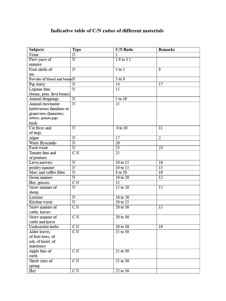 TABLE Indicative Reports Carbon On Nitrogen (N) | PDF | Manure | Compost
