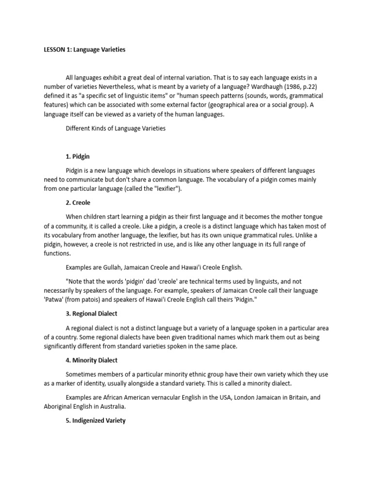 (DOC) Definition and Examples of Language Varieties These "lects" refer ...