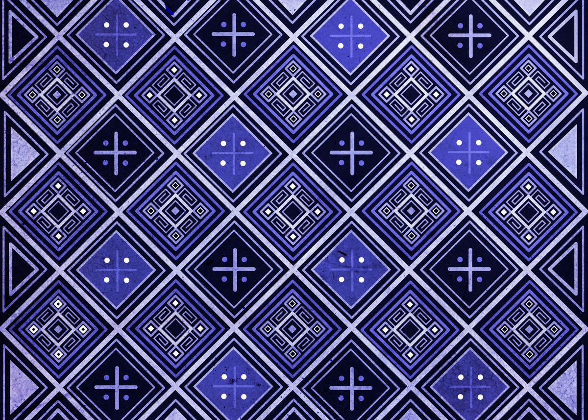 Indigo Ethnic Geometric Pattern - Painted by Oana Soare Seamless Repeat ...