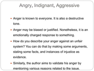 😎 Speaker's Tone - Argumentative, Persuasive, Condescending, Indignant ...