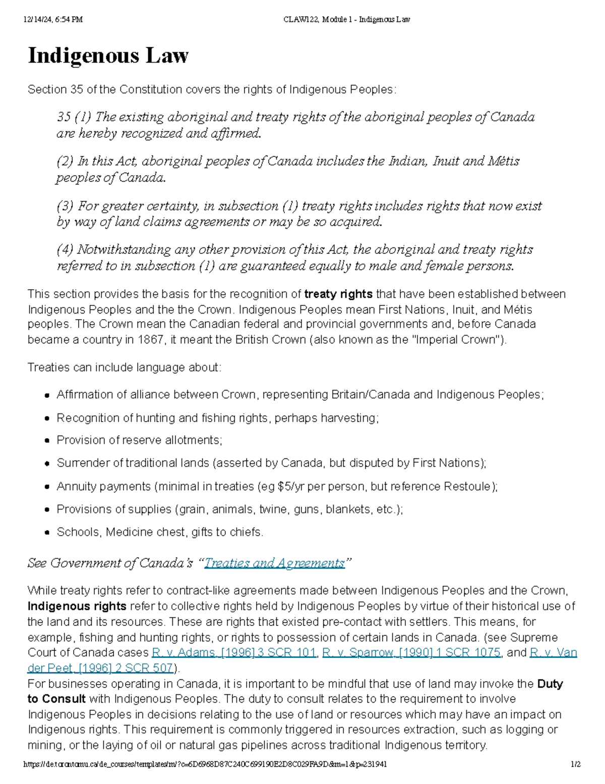 CLAW122: Module 1 - Overview of Indigenous Law and Rights - Studocu
