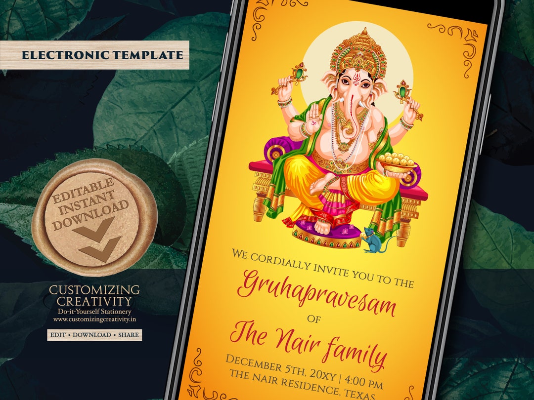 Indian Housewarming Invitation, Puja Digital Invitation, Gruha Pravesam ...