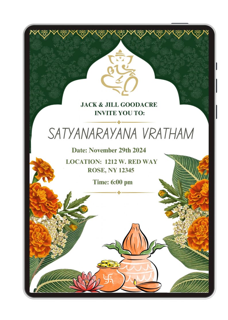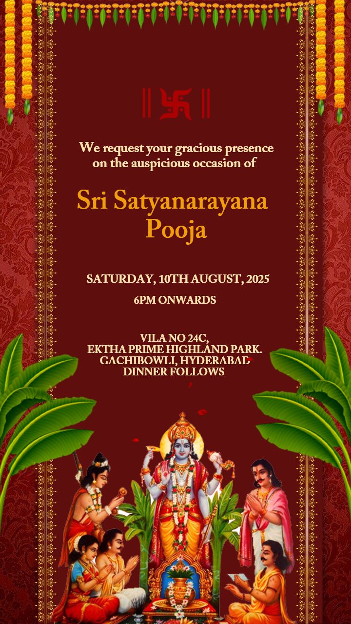 Satyanarayana Pooja Invitation Card: Indian Puja Invite (digital ...