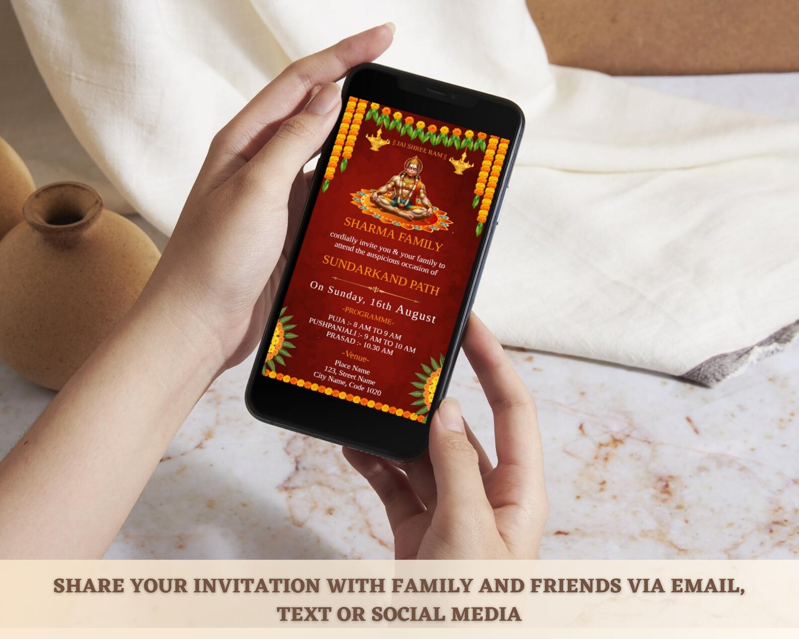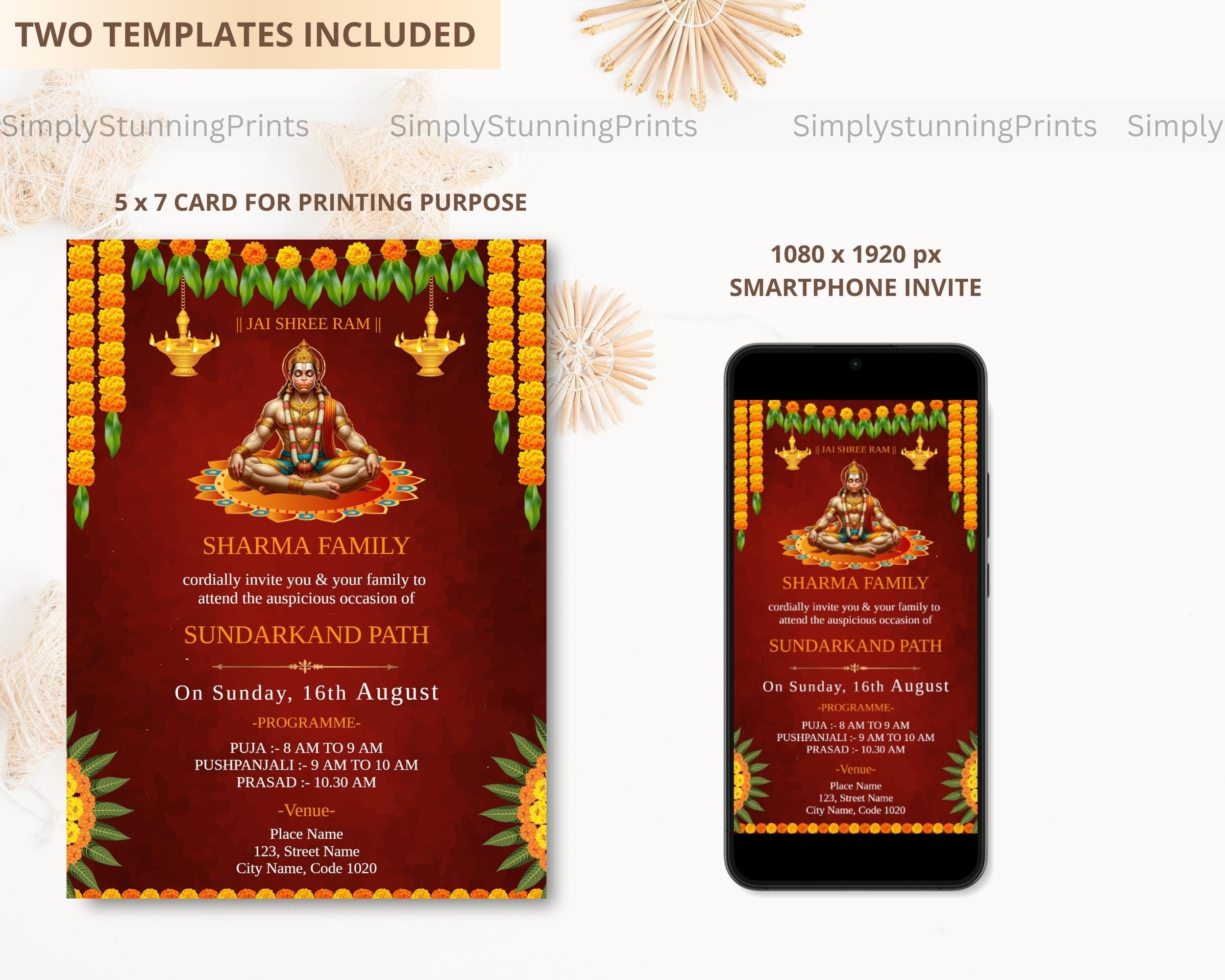 Hanuman Chalisa, Sunderkand Path Virtual Invitation. Easy to Edit ...