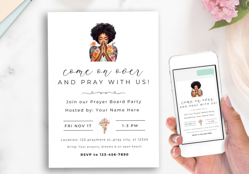 Prayer Board Invitation, Prayer Party Invite, Editable Template, Text ...