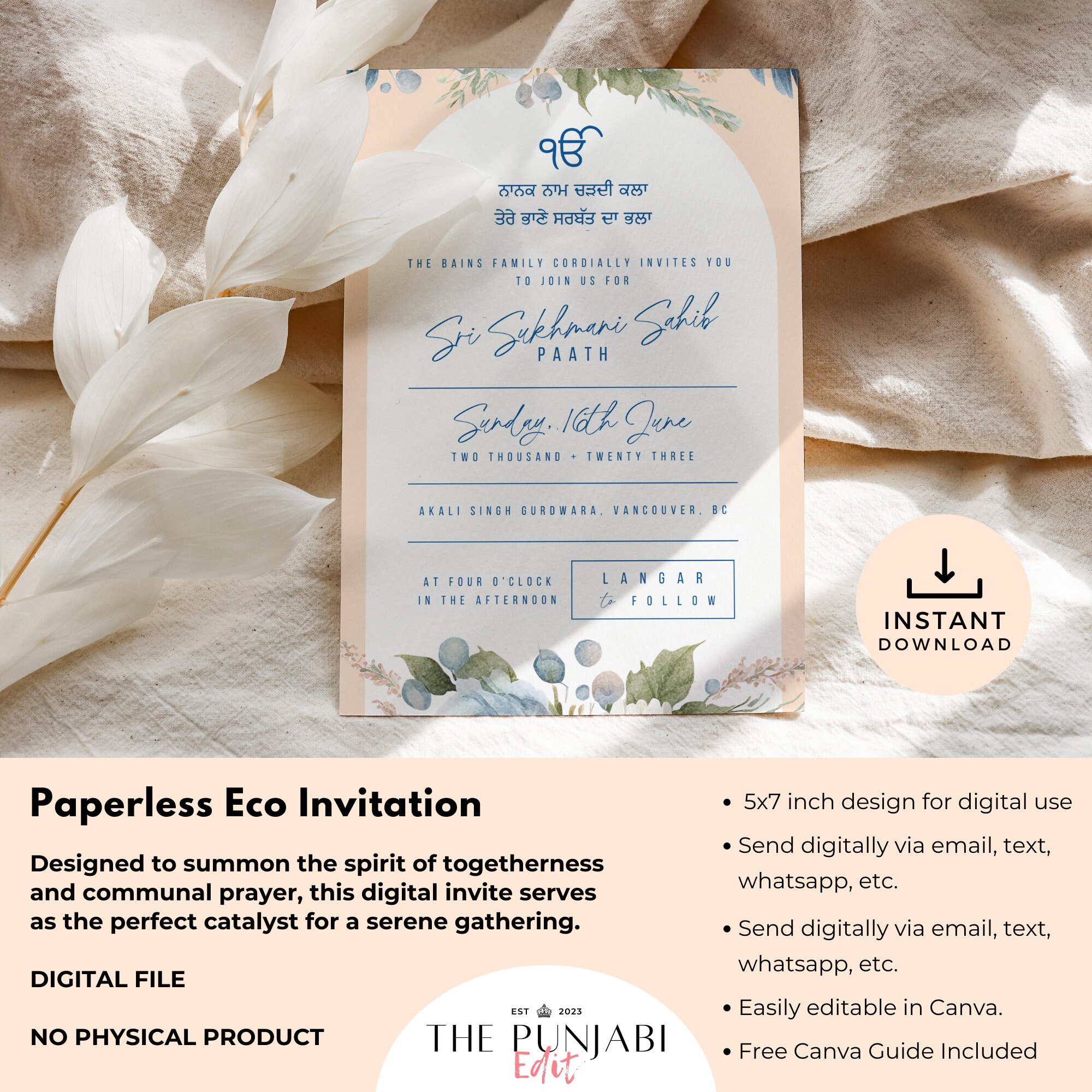 Sukhmani Sahib Paath Invitation, Digital Sikh Prayer Invite, Sri Akhand ...
