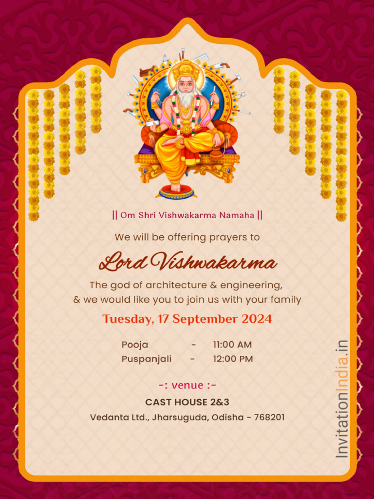 Free Vishwakarma Puja Invitation Template to Edit Online