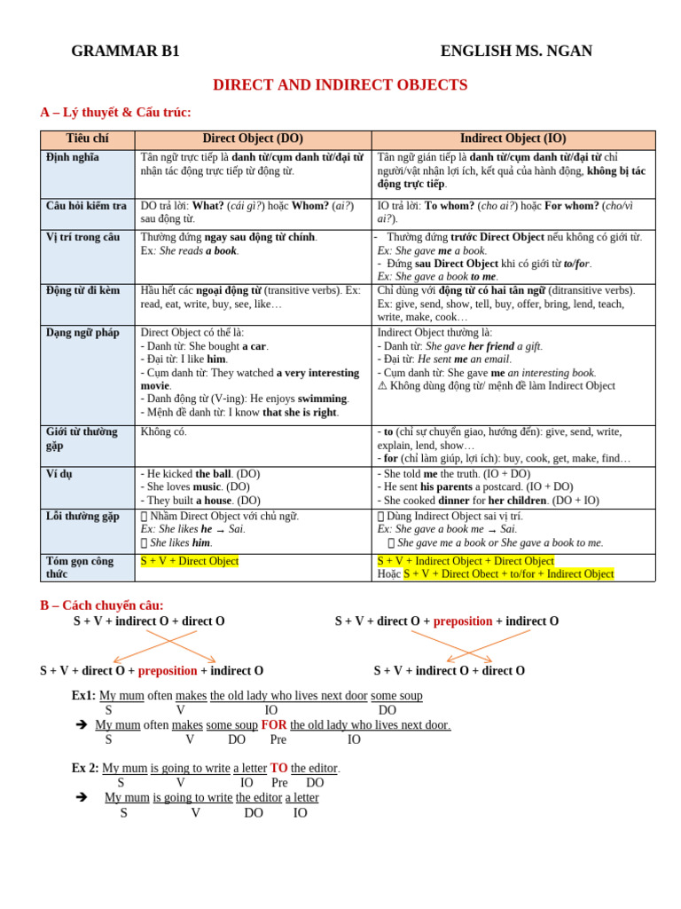 Unit 34 - Direct Object & Indirect Objects | PDF | Syntax | Grammar
