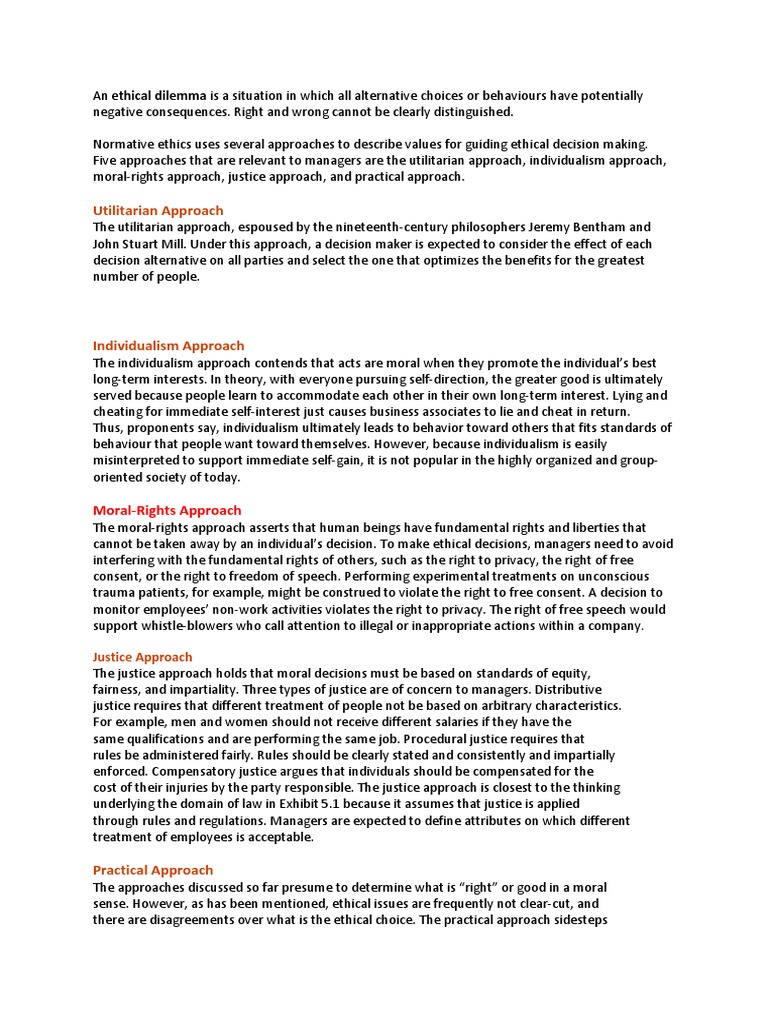 Ethical Decision Making: Utilitarian vs. Individualism Approach ...
