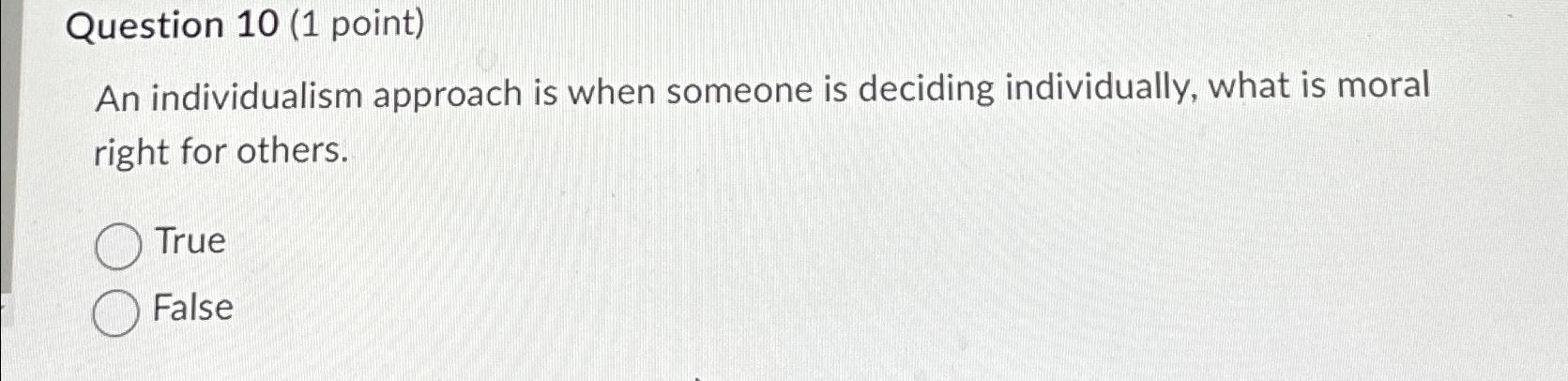 Solved Question 10 (1 point)An individualism approach is | Chegg.com